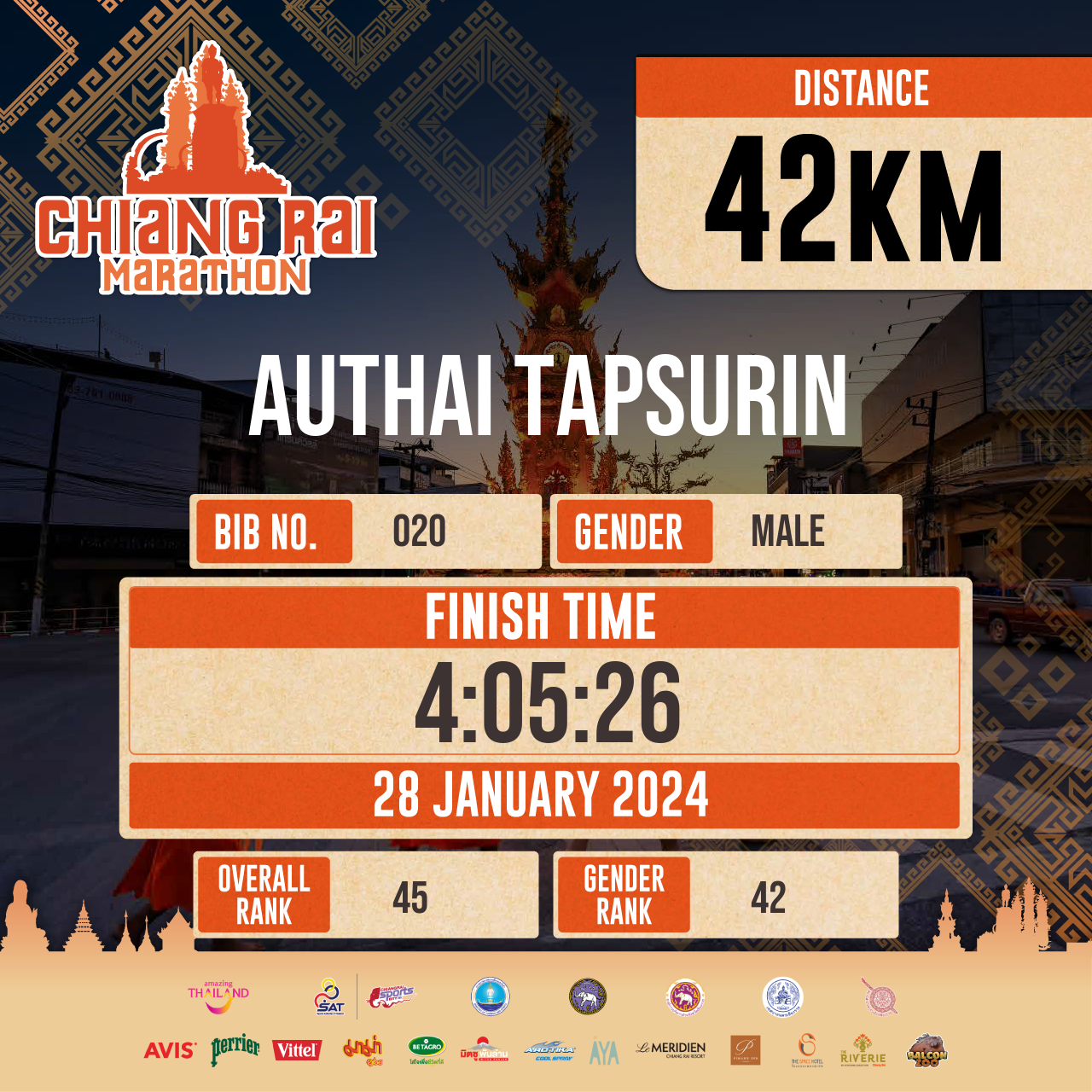 42 | 2:18:48 | 4:05:26 | 28 Jan 07:07:26 |