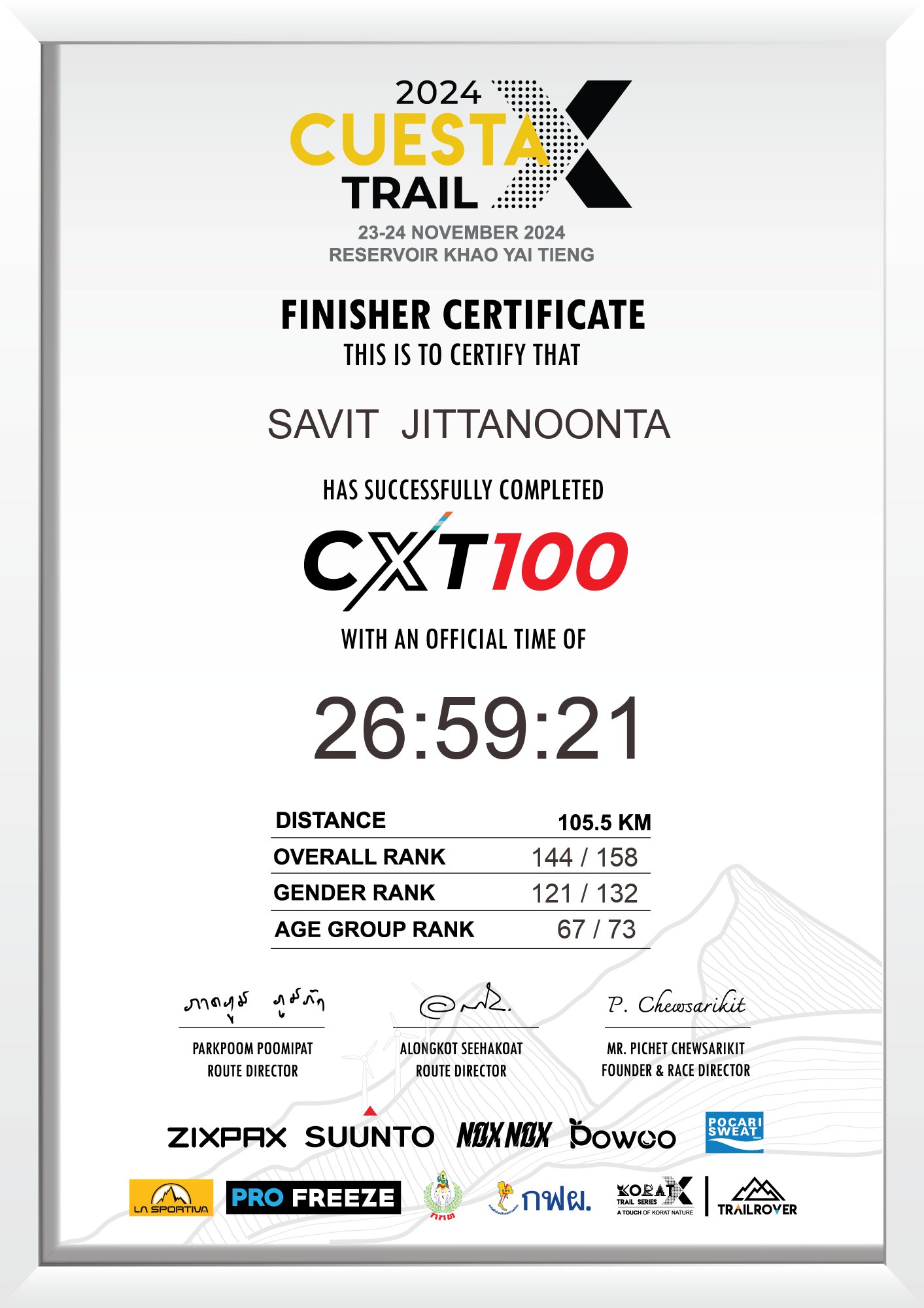 105.5 | 1:57:18 | 26:59:21 | 24 Nov 18:59:21 |