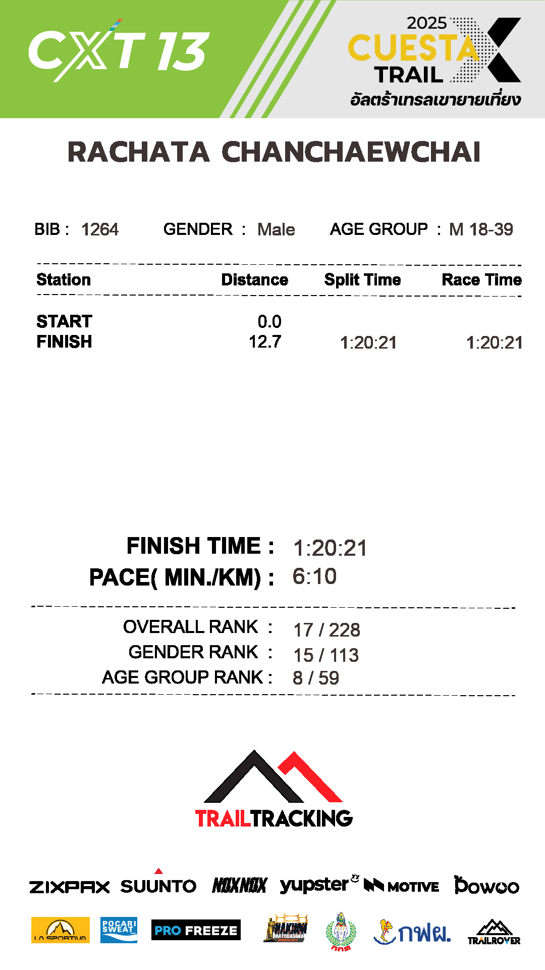 | Station | Distance (Km.) | Split Time | Race Time | Time of Day |
