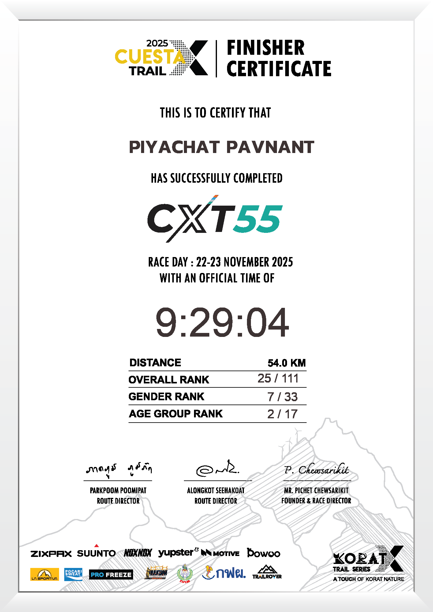 54.0 | 2:25:56 | 9:29:04 | 23 Nov 13:29:04 |
