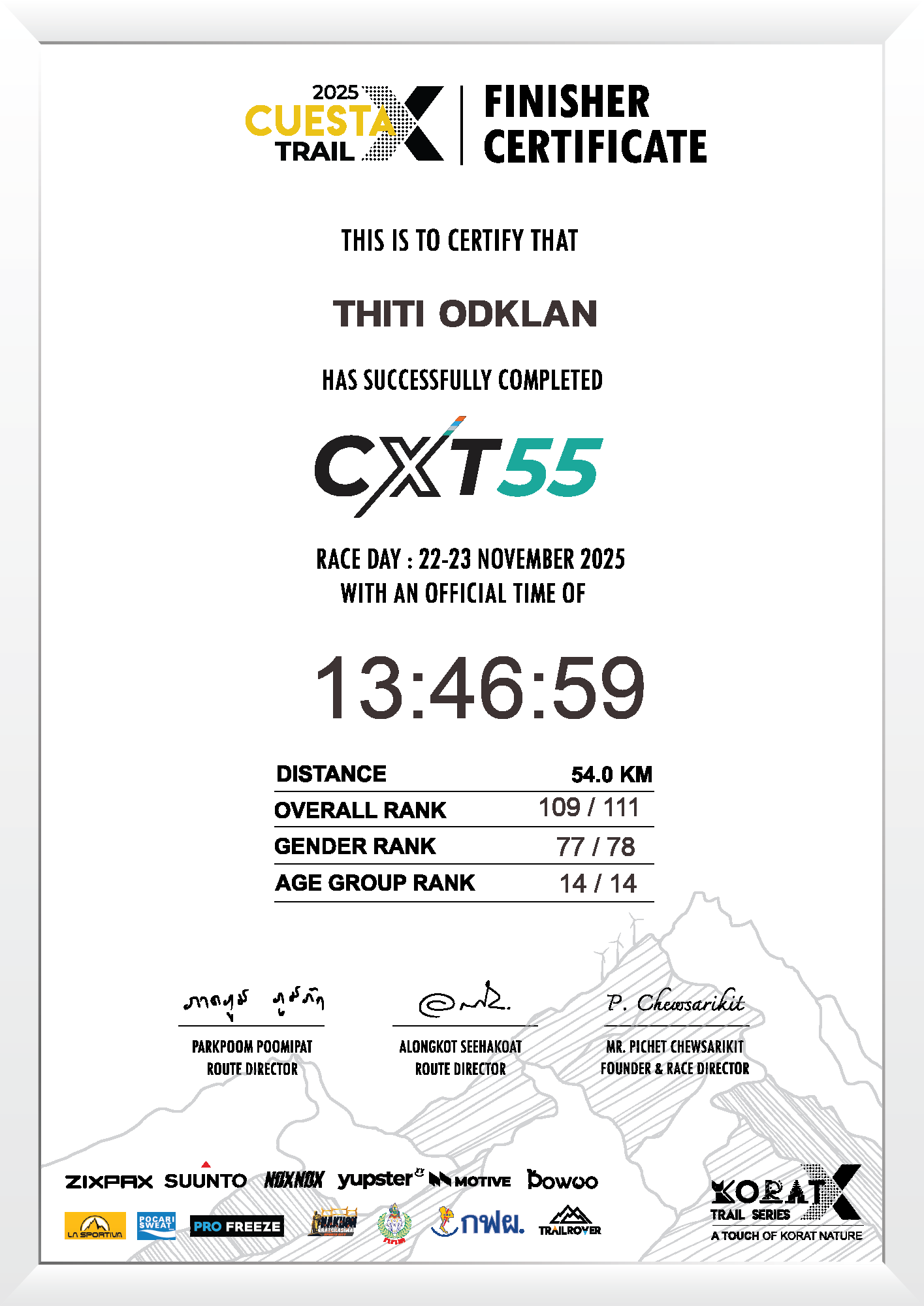 54.0 | 3:59:11 | 13:46:59 | 23 Nov 17:46:59 |