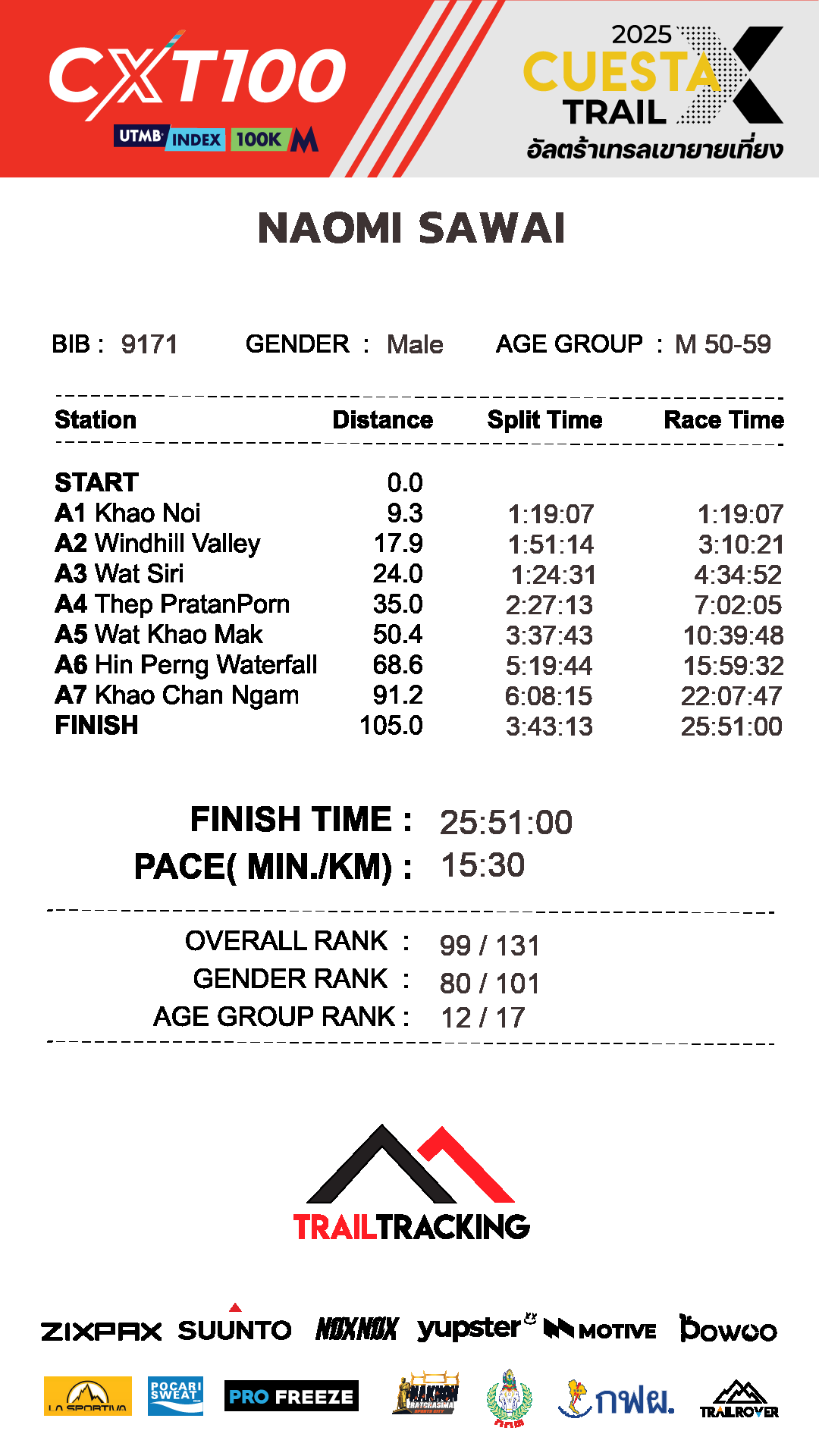 105.0 | 3:43:13 | 25:51:00 | 23 Nov 16:51:00 |