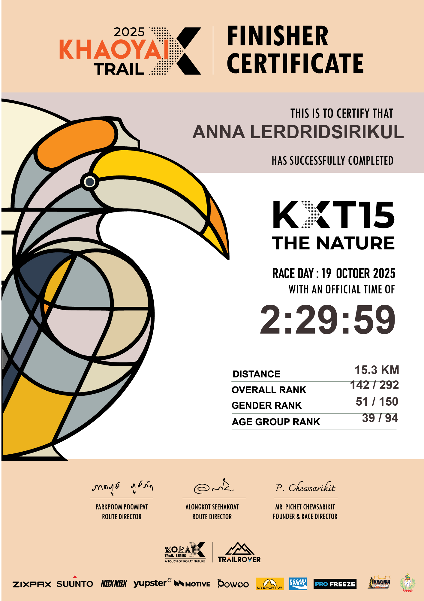 15.3 | 1:05:43 | 2:29:59 | 19 Oct 08:59:59 |