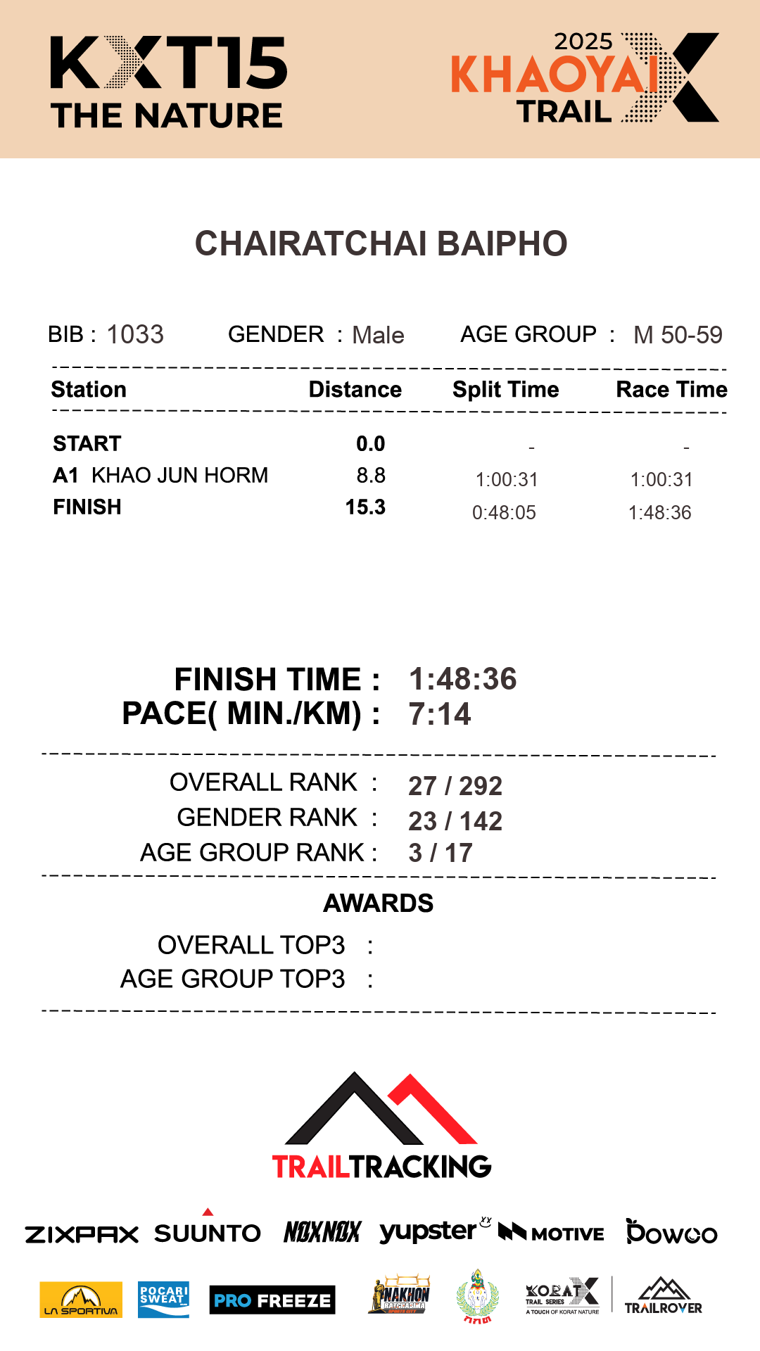 | Station | Distance (Km.) | Split Time | Race Time | Time of Day |