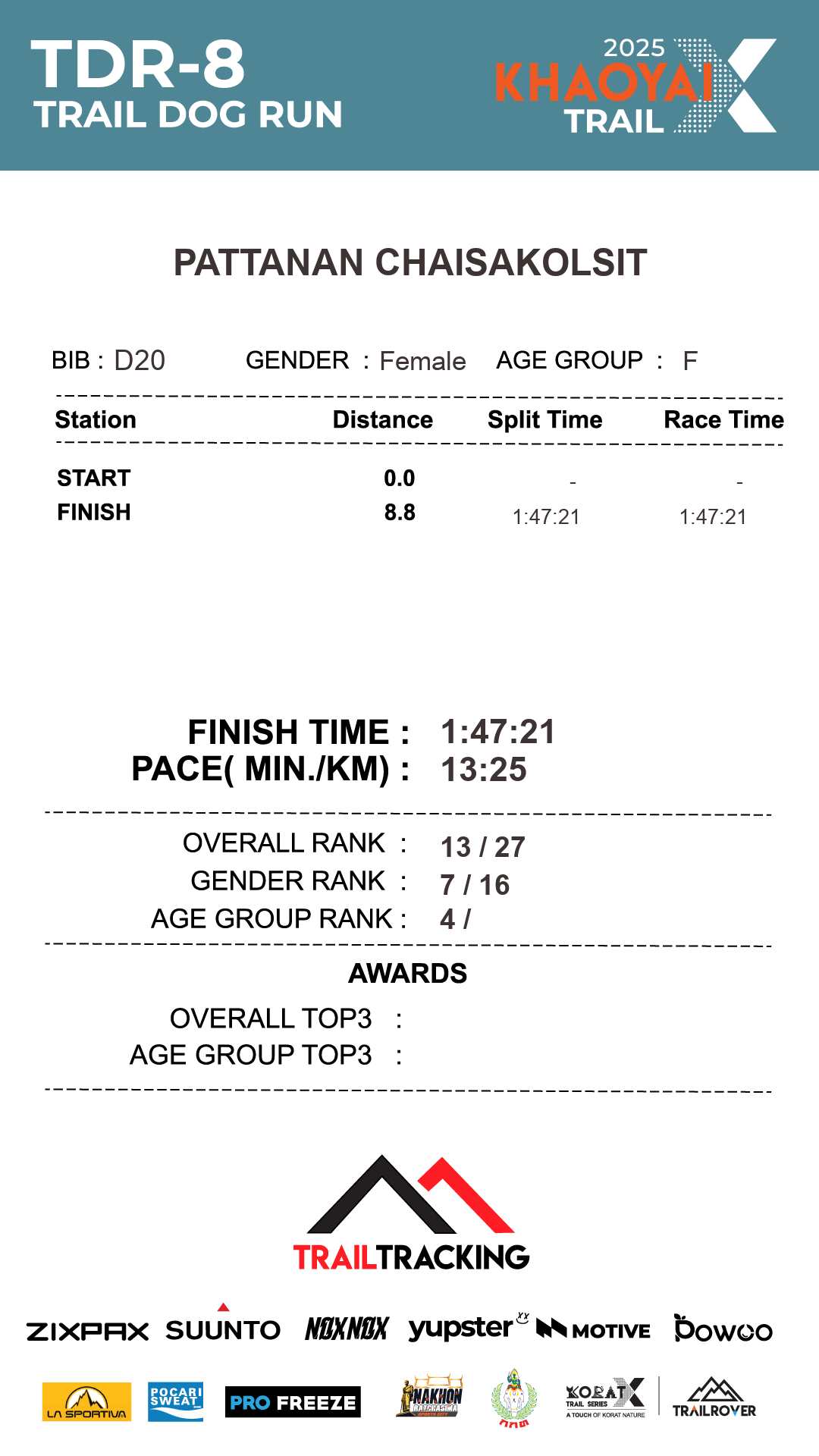 | Station | Distance (Km.) | Split Time | Race Time | Time of Day |