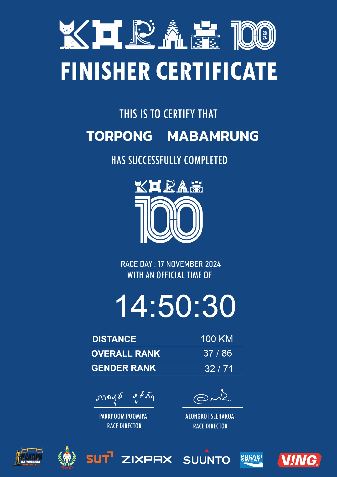 | LAP4 40KM | 40 | 1:22:51 | 4:34:05 | 17 Nov 07:39:05 |