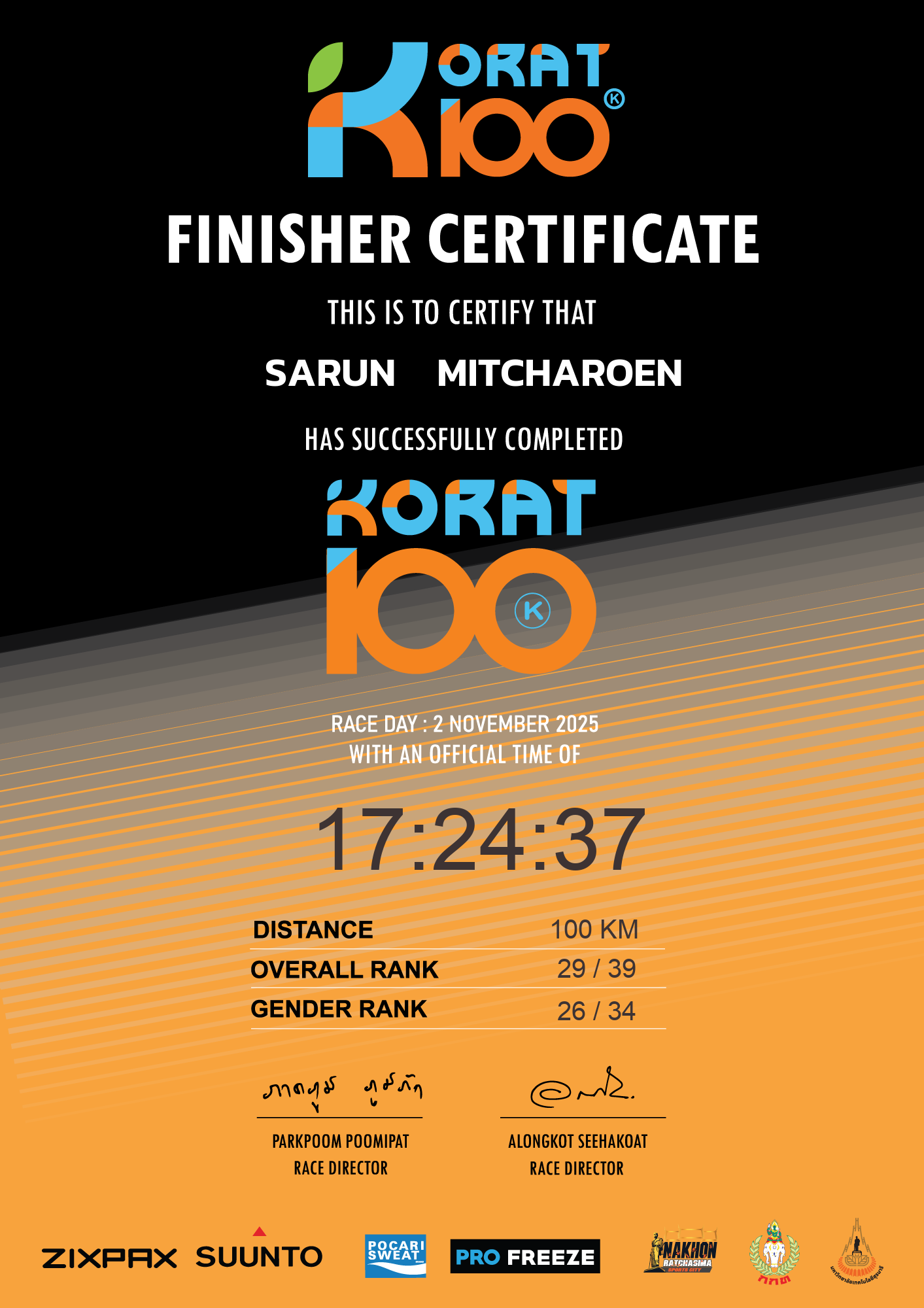 | LAP5 50KM | 50 | 1:45:24 | 7:17:15 | 2 Nov 10:17:15 |