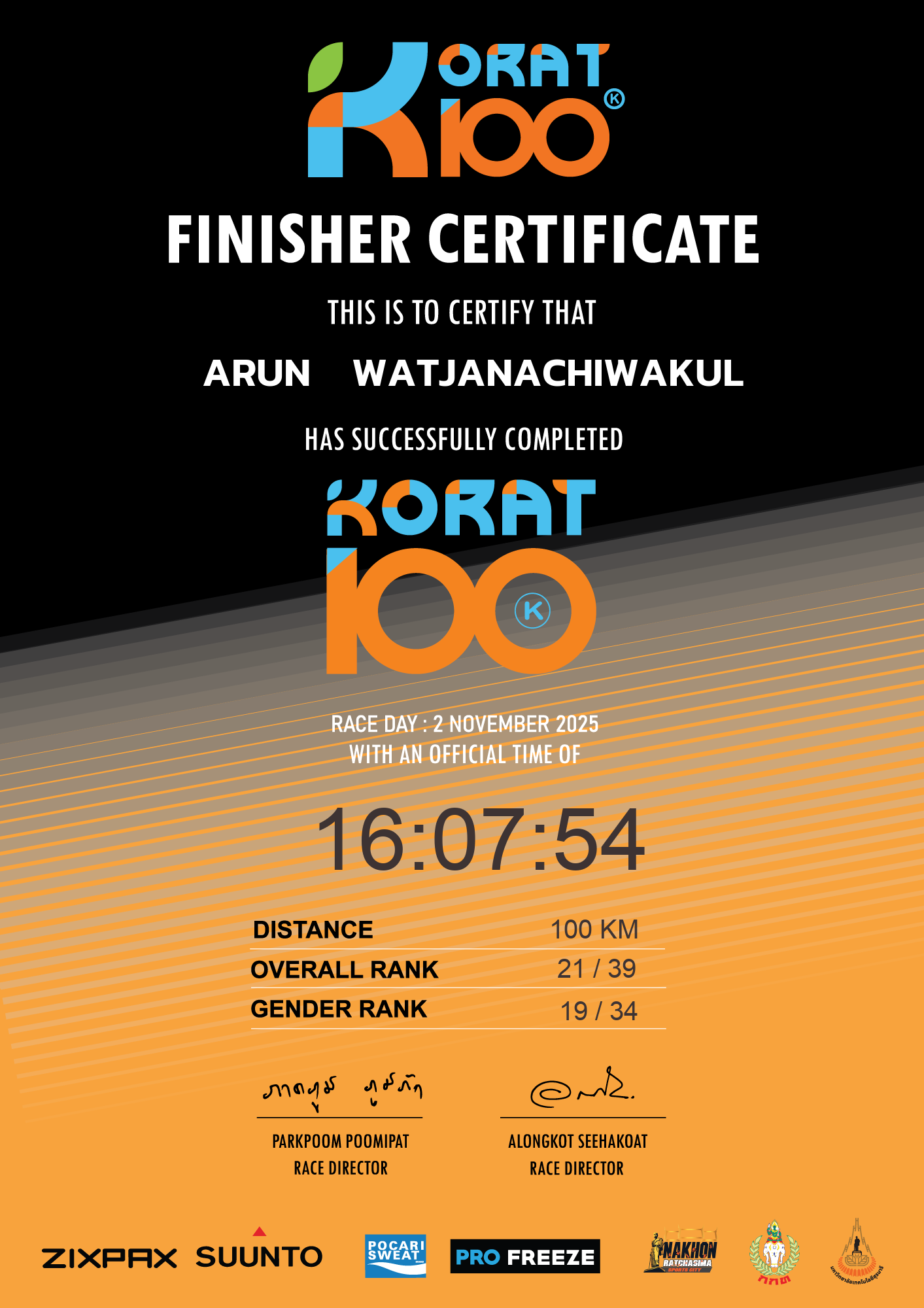 | LAP4 40KM | 40 | 1:28:05 | 5:06:13 | 2 Nov 08:06:13 |