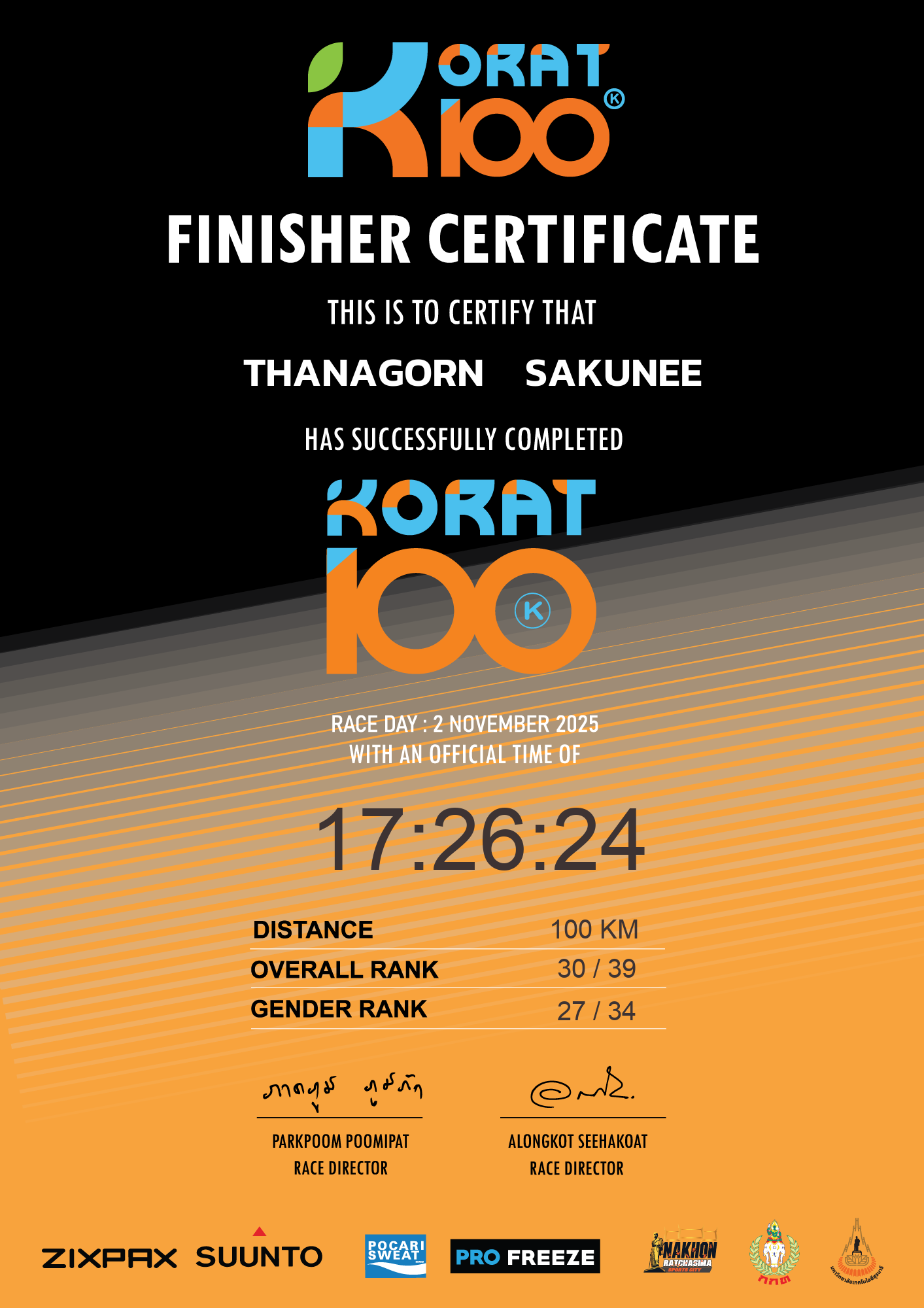 | LAP5 50KM | 50 | 1:39:16 | 7:42:40 | 2 Nov 10:42:40 |