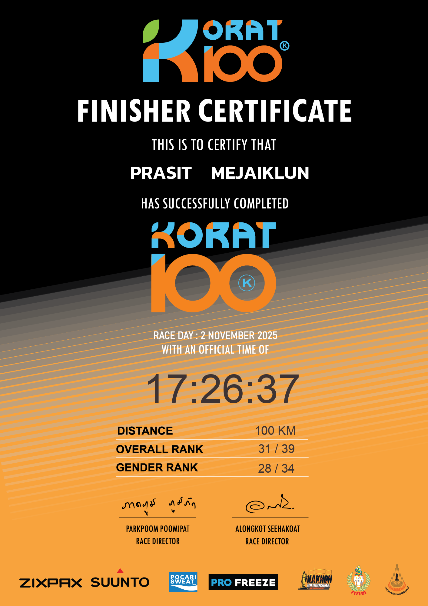 | LAP5 50KM | 50 | 1:47:54 | 7:49:33 | 2 Nov 10:49:33 |