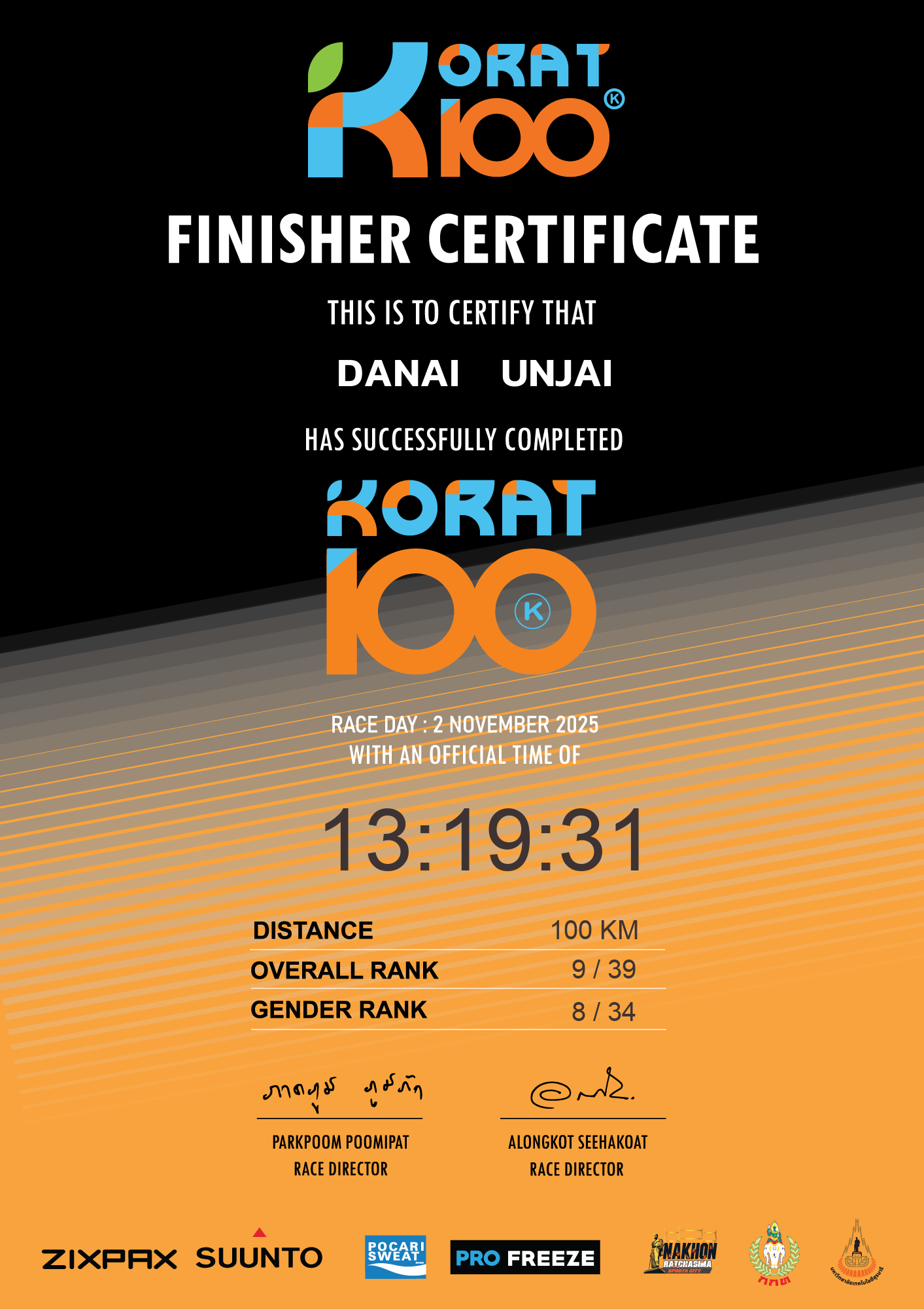 | LAP5 50KM | 50 | 1:17:28 | 5:54:43 | 2 Nov 08:54:43 |