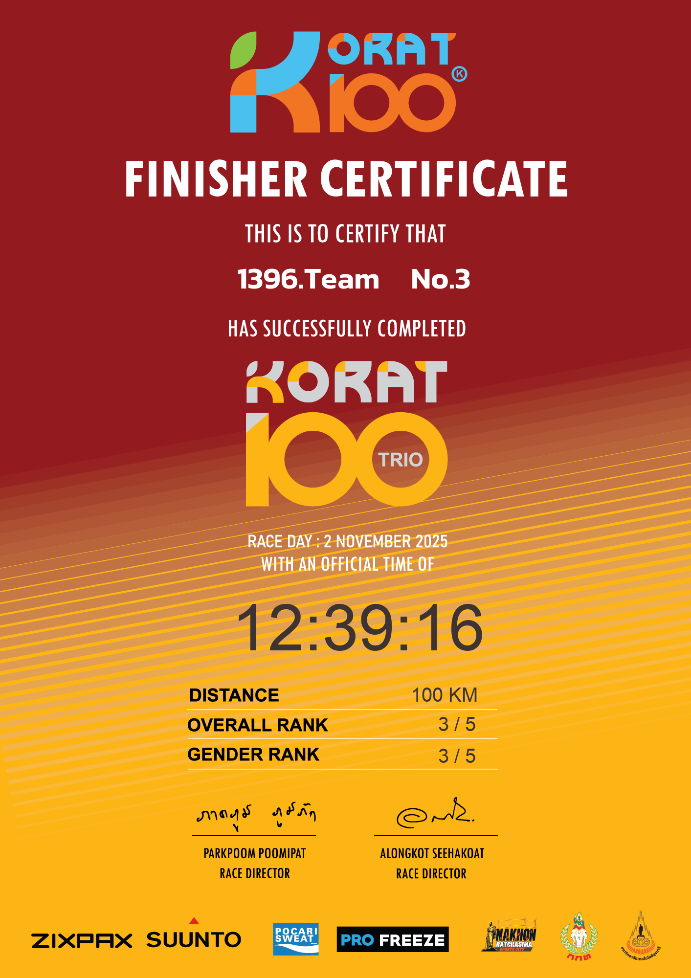 | LAP5 50KM | 50 | 1:19:35 | 5:12:29 | 2 Nov 08:42:29 |