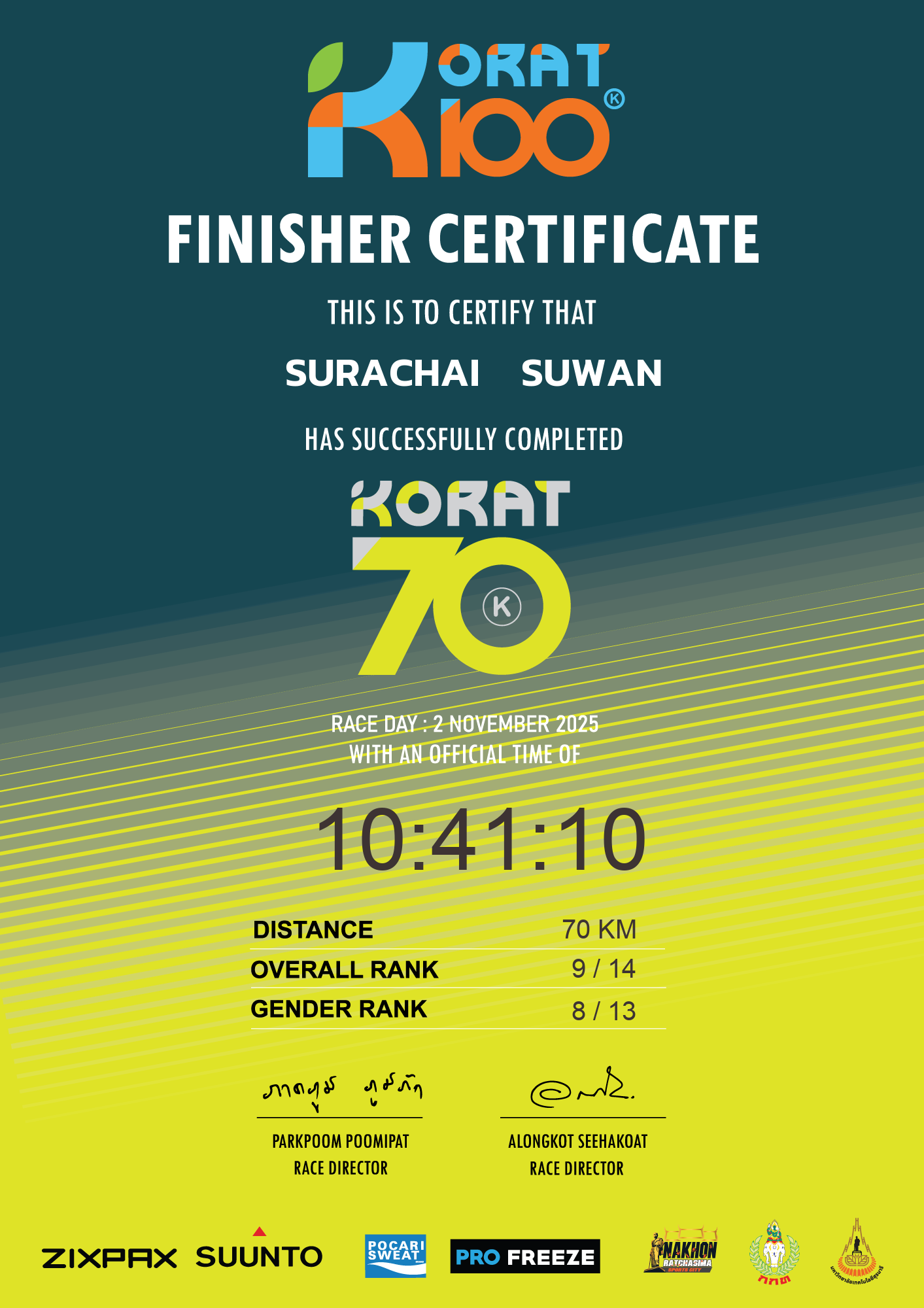 | LAP5 50KM | 50 | 1:39:20 | 7:12:54 | 2 Nov 10:42:54 |