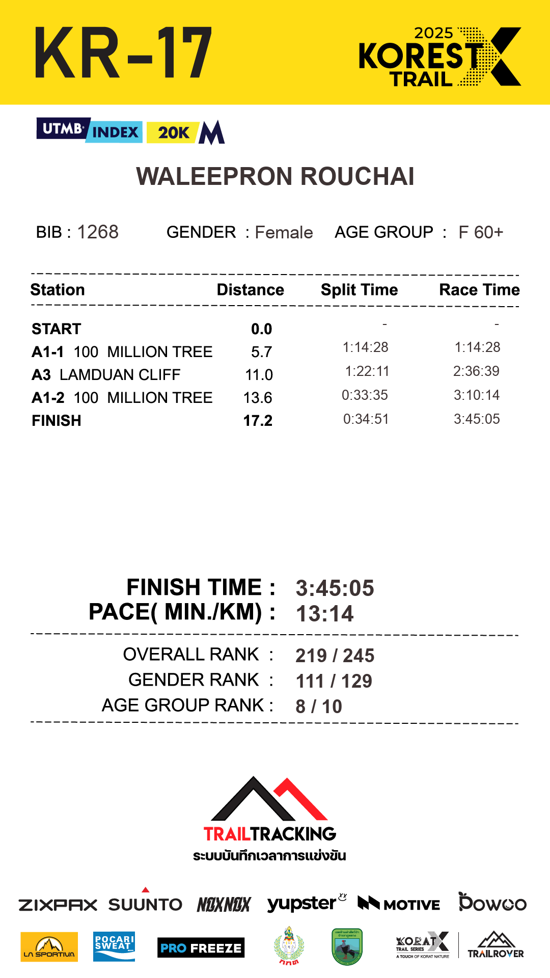 17.2 | 0:34:51 | 3:45:05 | 24 Aug 11:15:05 |