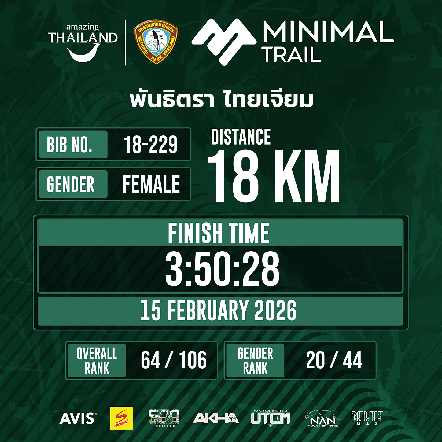 18 | 3:50:28 | 3:50:28 | 15 Feb 10:35:28 |