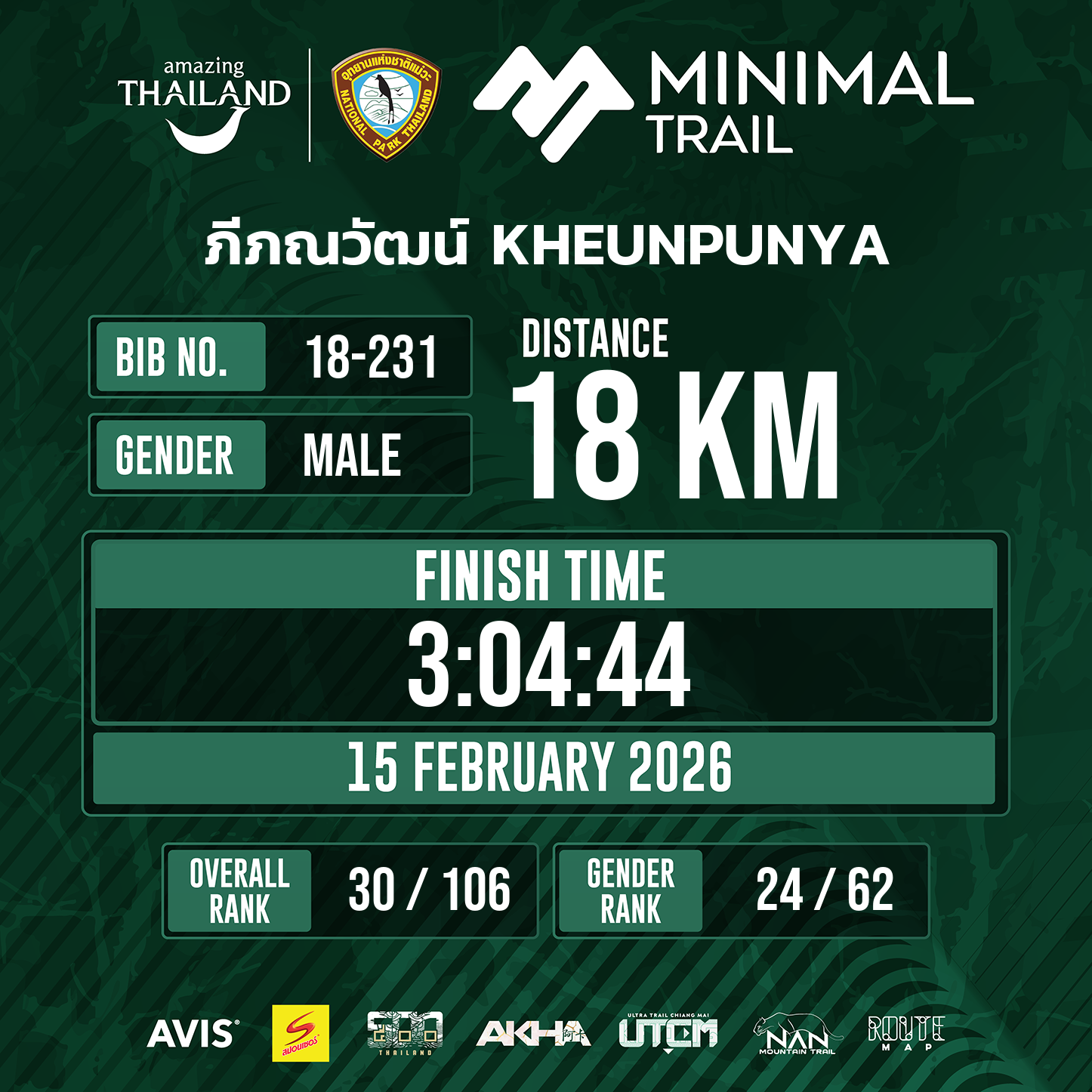 18 | 3:04:44 | 3:04:44 | 15 Feb 09:49:44 |