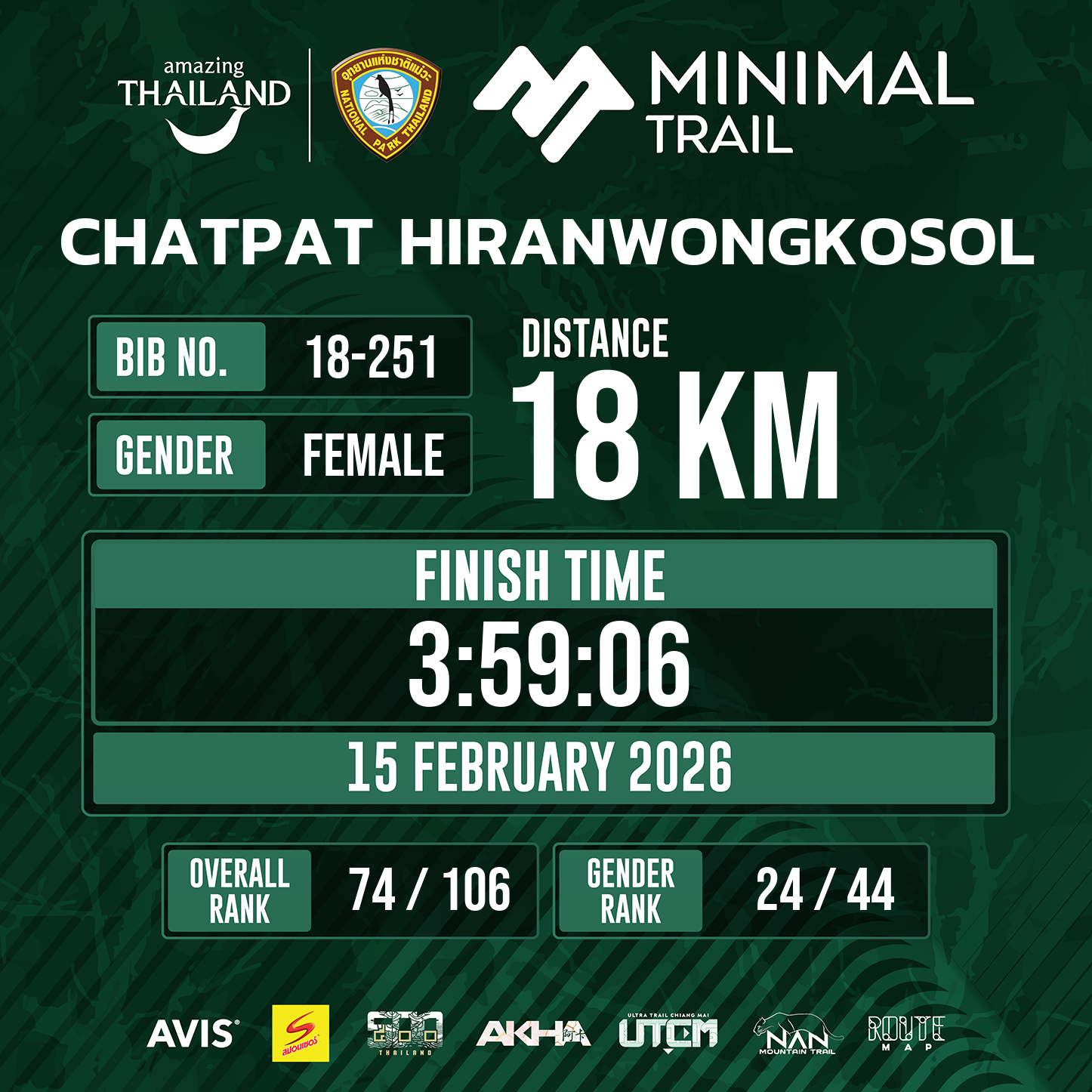 18 | 3:59:06 | 3:59:06 | 15 Feb 10:44:06 |