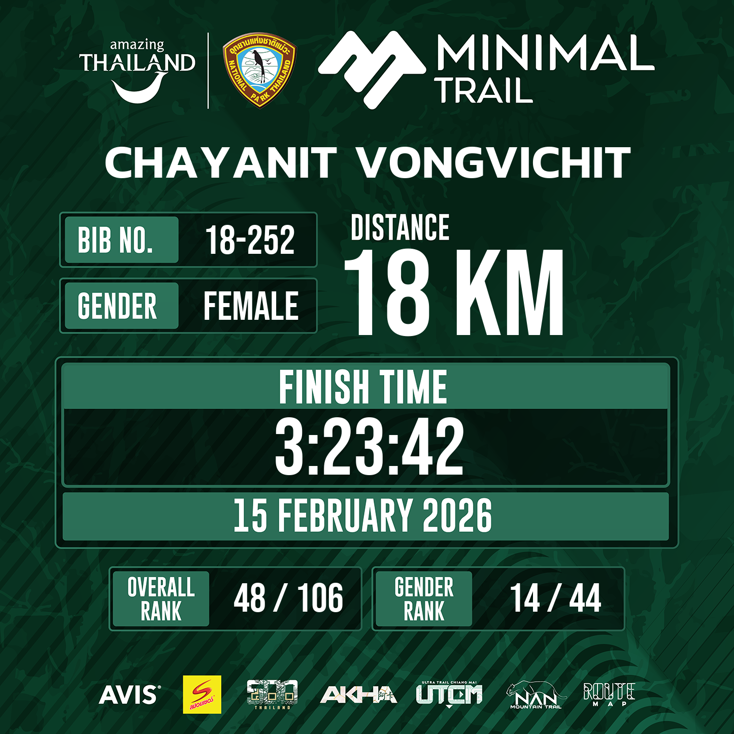 18 | 3:23:42 | 3:23:42 | 15 Feb 10:08:42 |