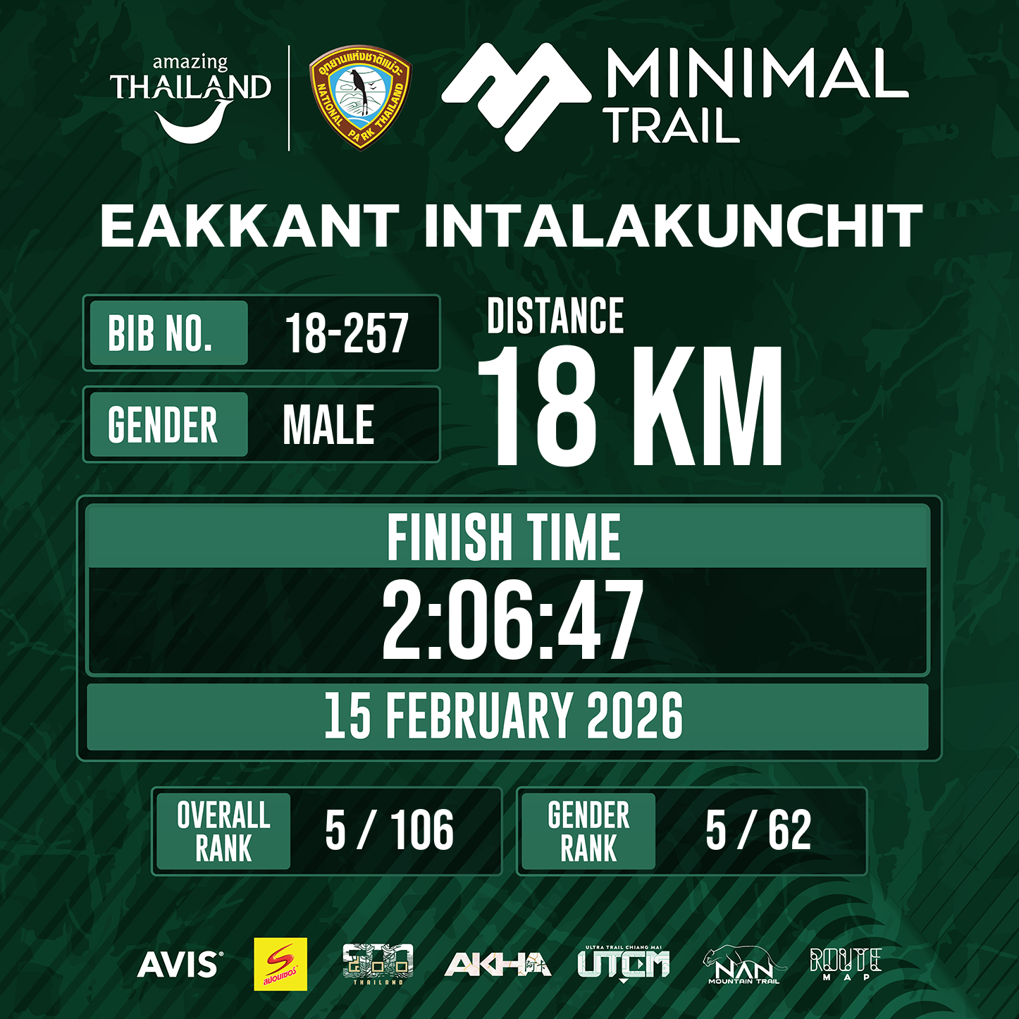 18 | 2:06:47 | 2:06:47 | 15 Feb 08:51:47 |