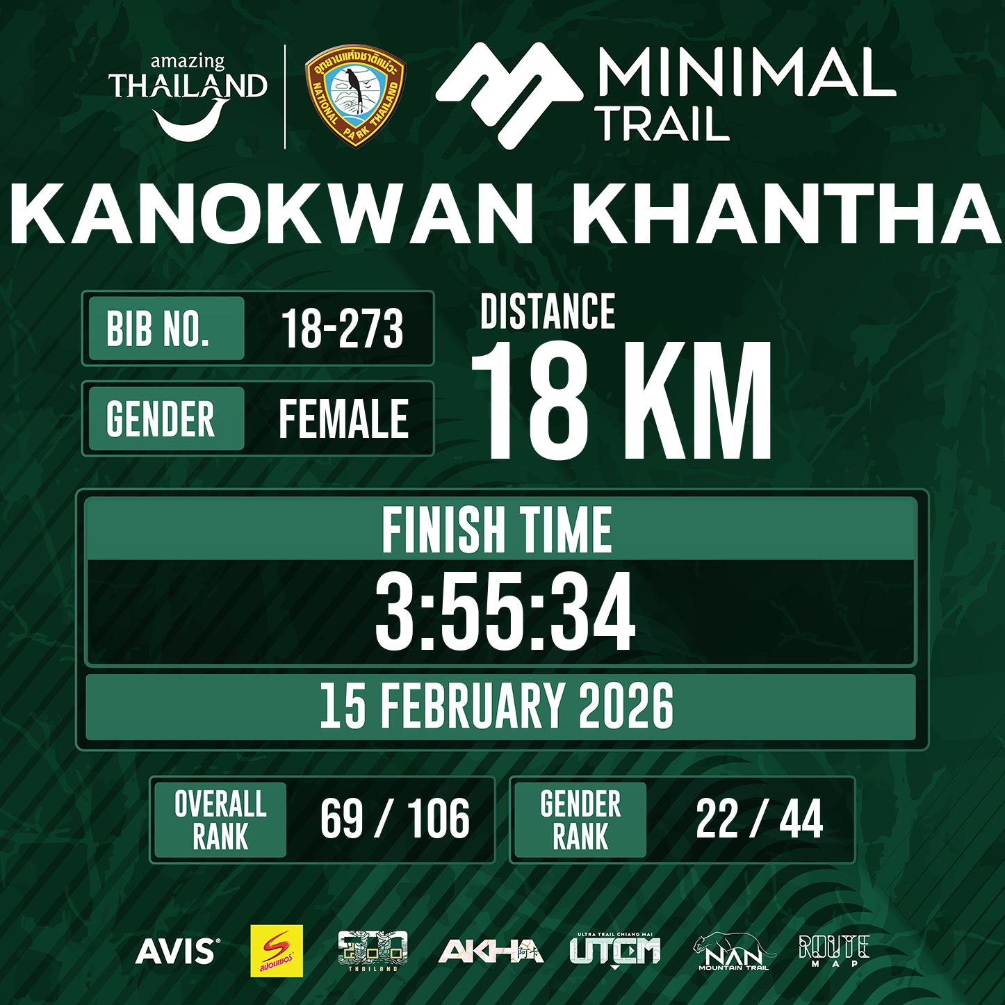18 | 3:55:34 | 3:55:34 | 15 Feb 10:40:34 |