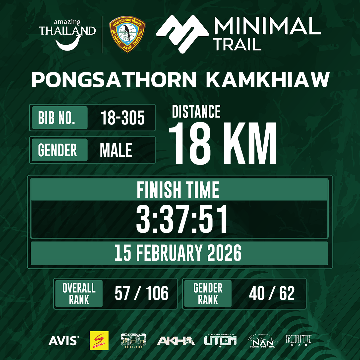 18 | 3:37:51 | 3:37:51 | 15 Feb 10:22:51 |