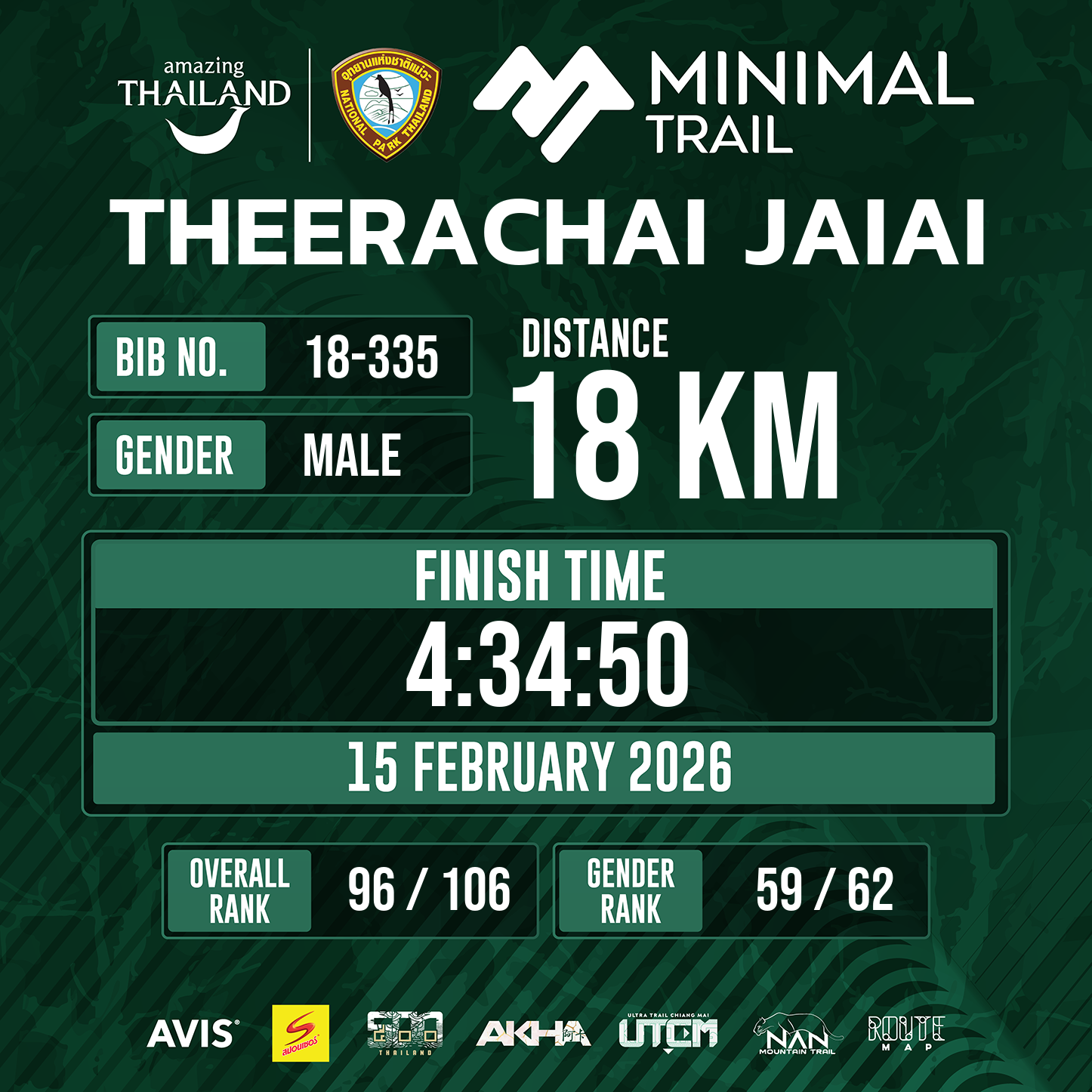 18 | 4:34:50 | 4:34:50 | 15 Feb 11:19:50 |