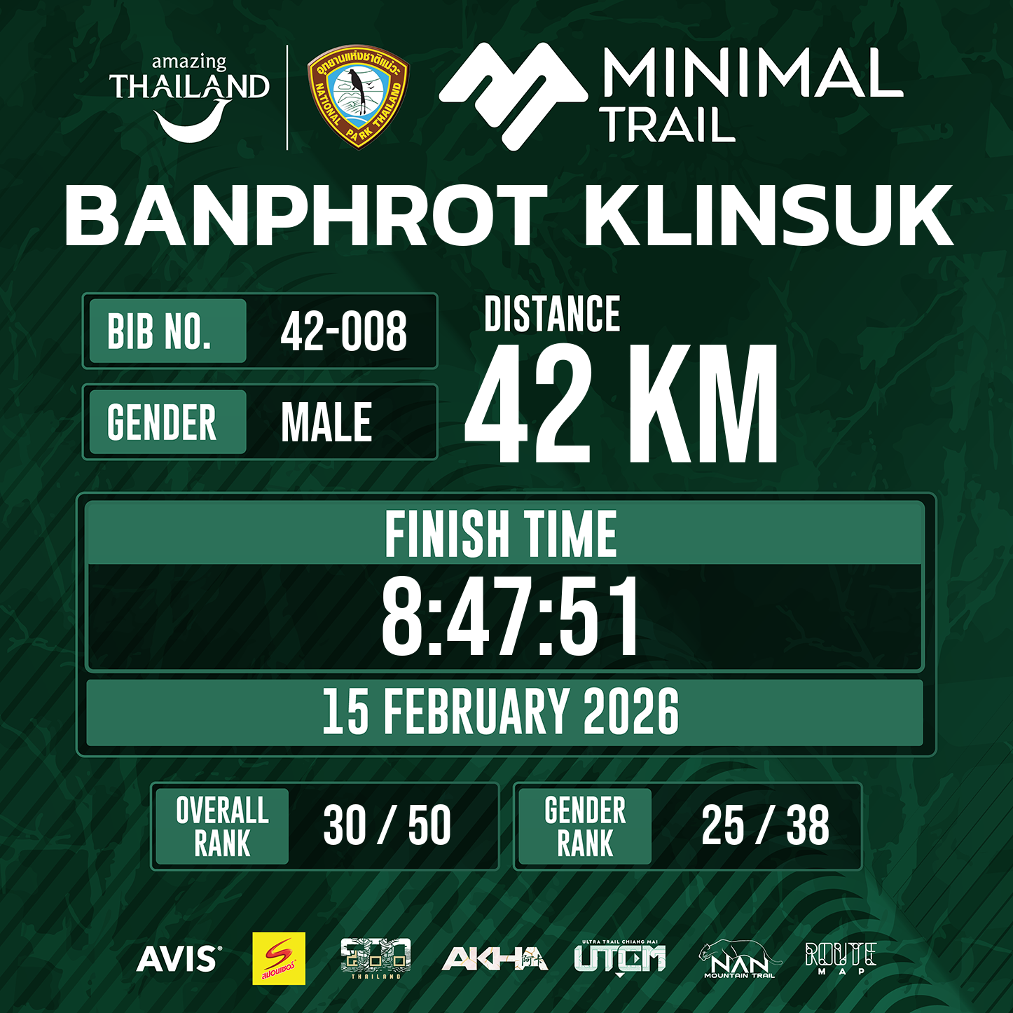42 | 3:26:17 | 8:47:51 | 15 Feb 15:21:51 |