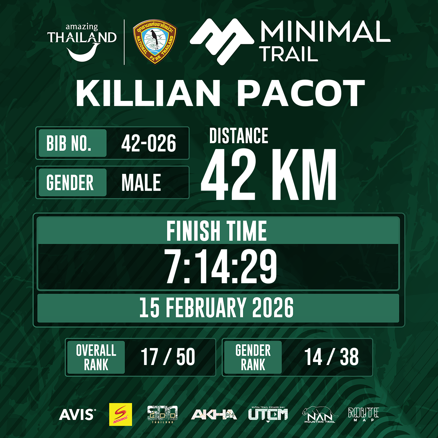 42 | 2:52:05 | 7:14:29 | 15 Feb 13:48:29 |