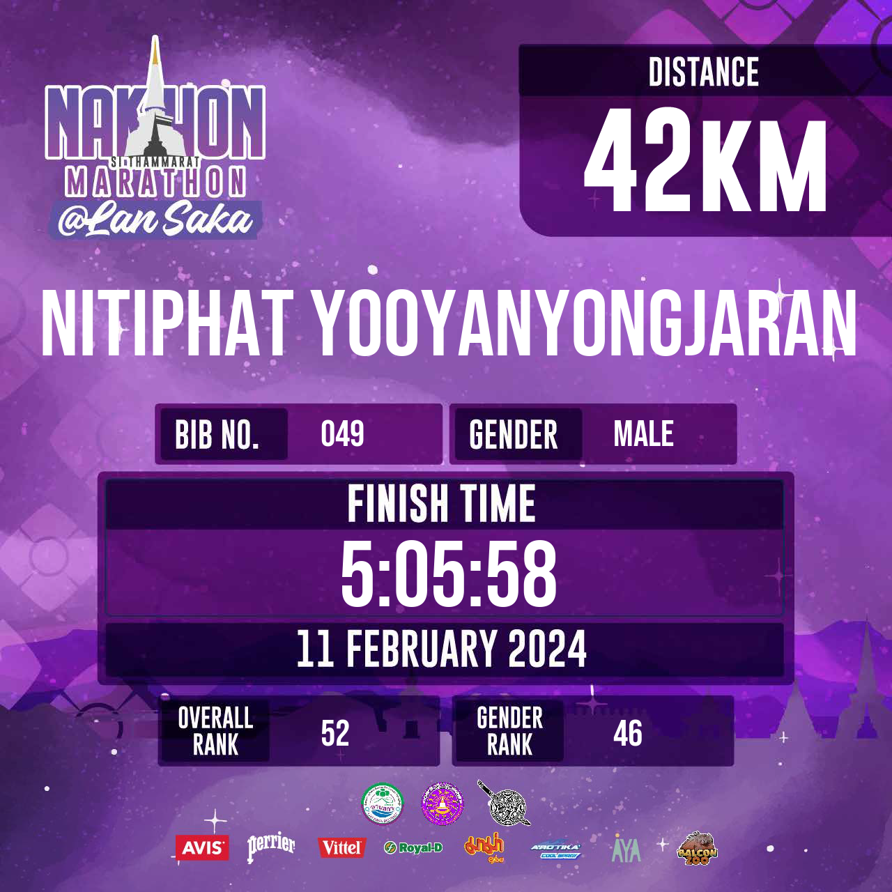 42 | 1:42:01 | 5:05:58 | 11 Feb 08:05:58 |