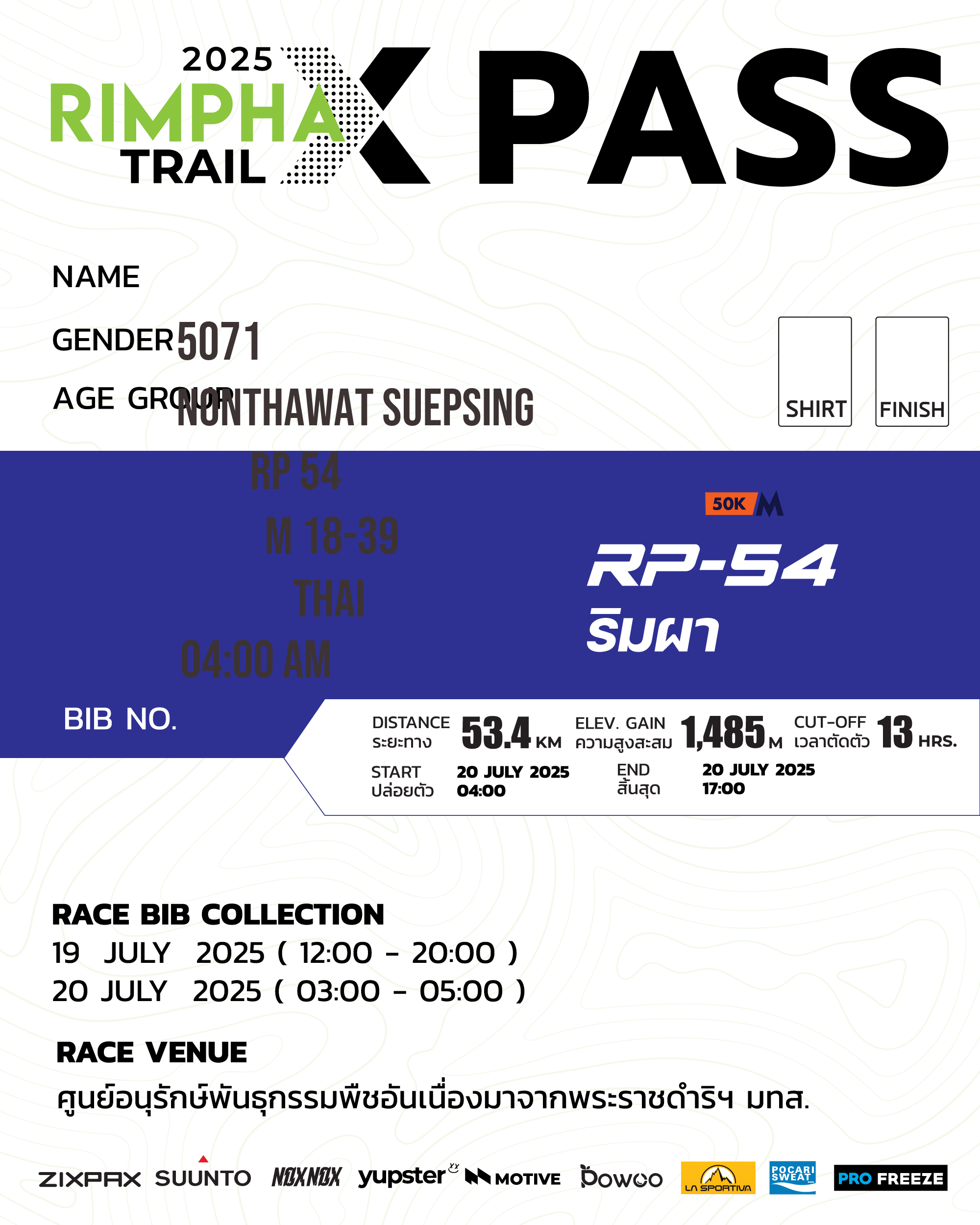 42.5 | 3:22:54 | 7:25:28 | 20 Jul 11:25:28 |