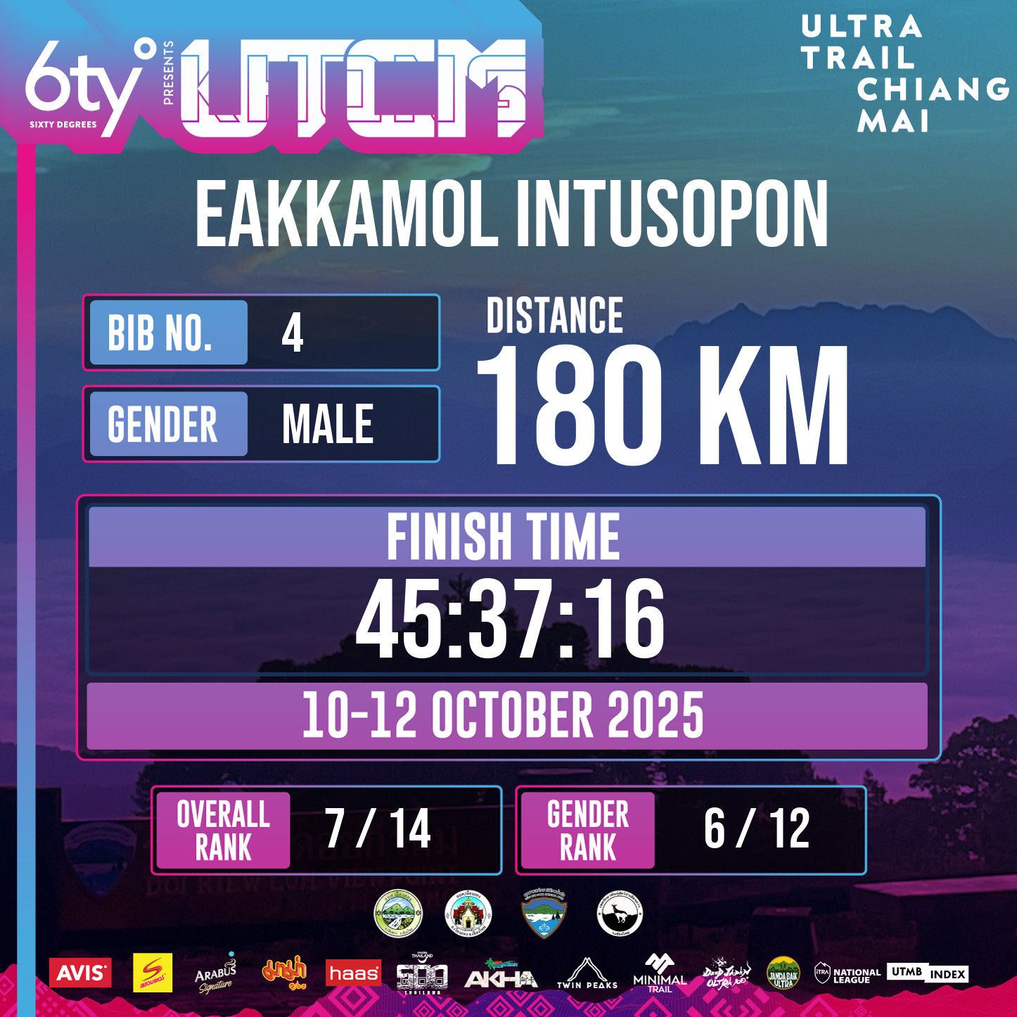 180 | 5:04:30 | 45:37:16 | 12 Oct 07:37:16 |