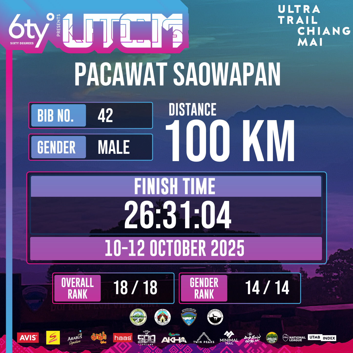 96.9 | 5:04:22 | 25:41:01 | 12 Oct 11:41:01 |