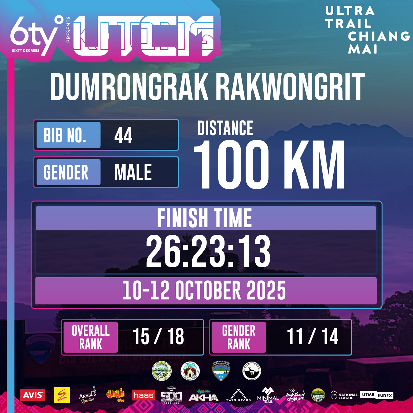 96.9 | 5:00:34 | 25:39:14 | 12 Oct 11:39:14 |